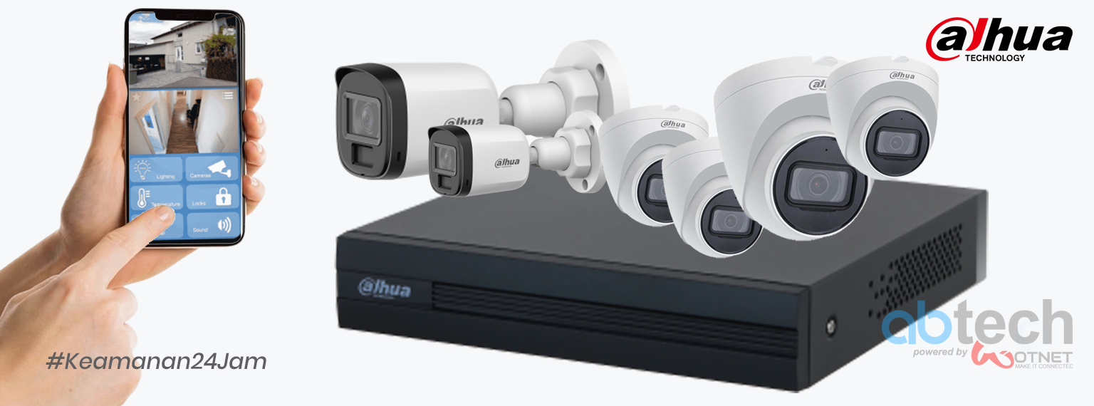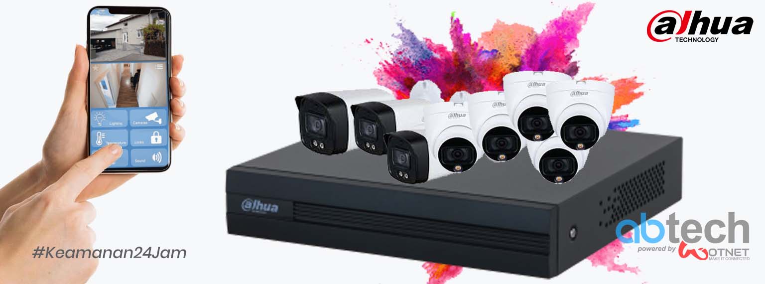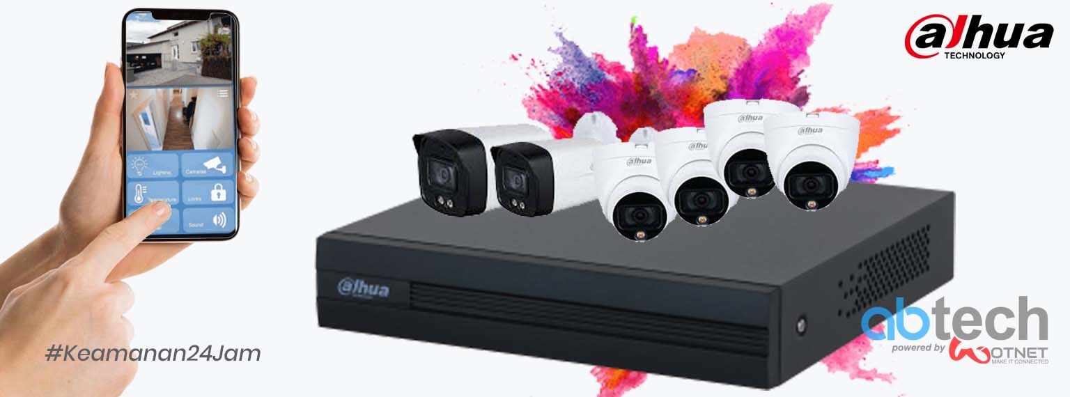 6x kamera full color 2MP, DVR 8-channel, Hardisk 1TB, Kabel 200 meter & Instalasi dasar